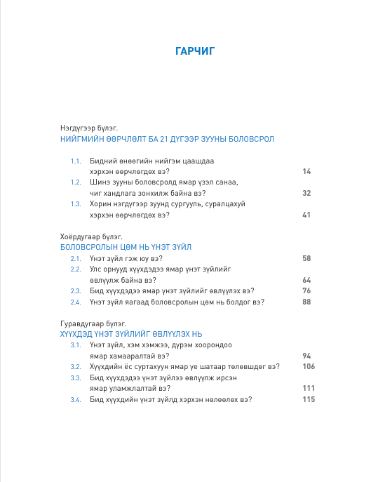 Энэ хичээлийн жилд зориулан “Бидний хүүхэд шинэ зуунд” номоо хоёр дахь удаагаа хэвлүүлэн багш Танд өргөн барьж байна. Энэхүү ном нь Танд хүүхдэдээ багаас нь амьдралын зайлшгүй хэрэгцээтэй дадал зуршил, харилцааны эв дүй эзэмшүүлэх улмаар хүүхдээ хүнлэг, идэвх оролцоо, зүтгэл чармайлттай сайн иргэн болгон төлөвшүүлэхэд туслах болно. Номыг мөн сургуулийн өмнөх боловсролын байгууллагын удирдлага, оюутан сурагчид, боловсролын бодлого бодлого боловсруулагч, шийдвэр гаргагч, мэргэжилтэн, судлаачид болон бага ангийн багш нар, бага насны хүүхэдтэй эцэг эх ашиглаж болно.