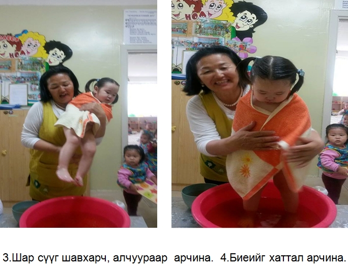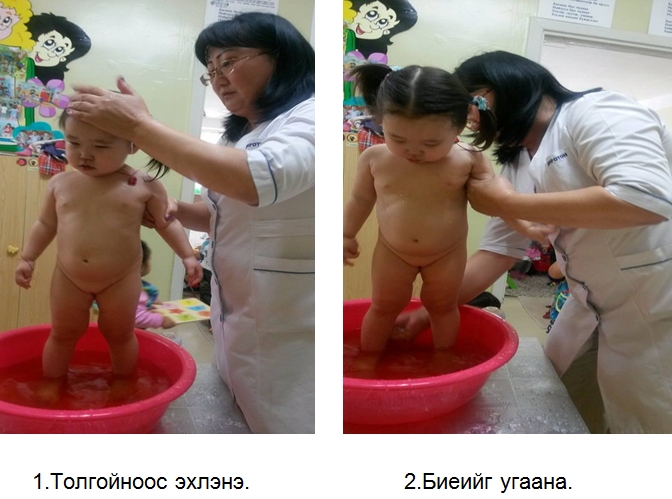 1.Эхлэхдээ толгойноос эхлэн нүүрийг угааж хүүхдийн цочроог гаргана.